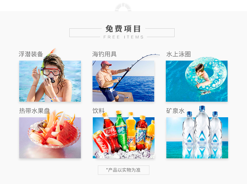 | 選配項目: | 摩托艇、飛魚、香蕉船、水上飛行器、飛拖、滑板 | ||||||