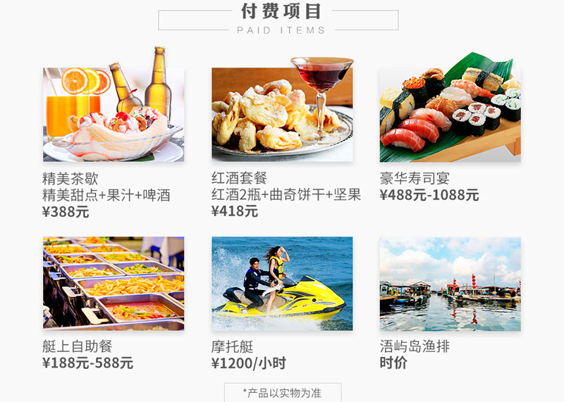標(biāo)配項(xiàng)目: 水果、漁具、零食、飲料 影音設(shè)備: DVD、CD、USB音樂(lè)